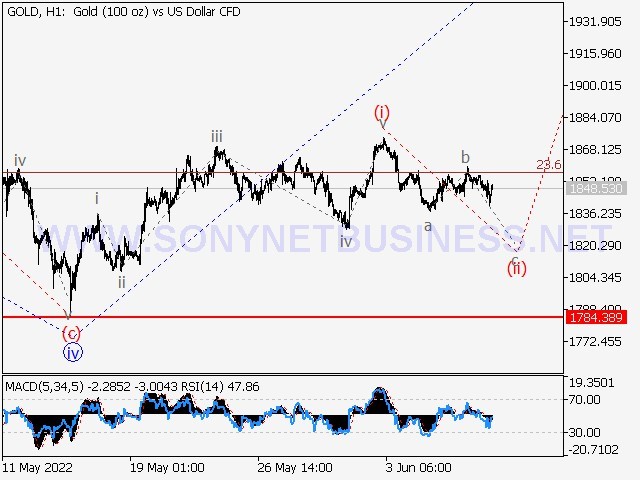 On the daily chart, the third wave of larger degree (3) is still developing, with the fifth wave 5 of (3) forming inside. On the H4 chart, wave iii of 5 appears to be complete, and the fourth wave iv of 5 has formed as a downward correction.On the H1 chart, the fifth wave v of 5 is presumably developing, with the first counter-trend wave I of v forming and a local correction (ii) of v developing inside. If the assumption is right, the pair will continue to increase following the correction to values between 1997.97 and 2070.98. In this situation, the level of 1784.38 is crucial because if it is broken, the pair will continue to fall to the levels of 1722.24 – 1616.95.